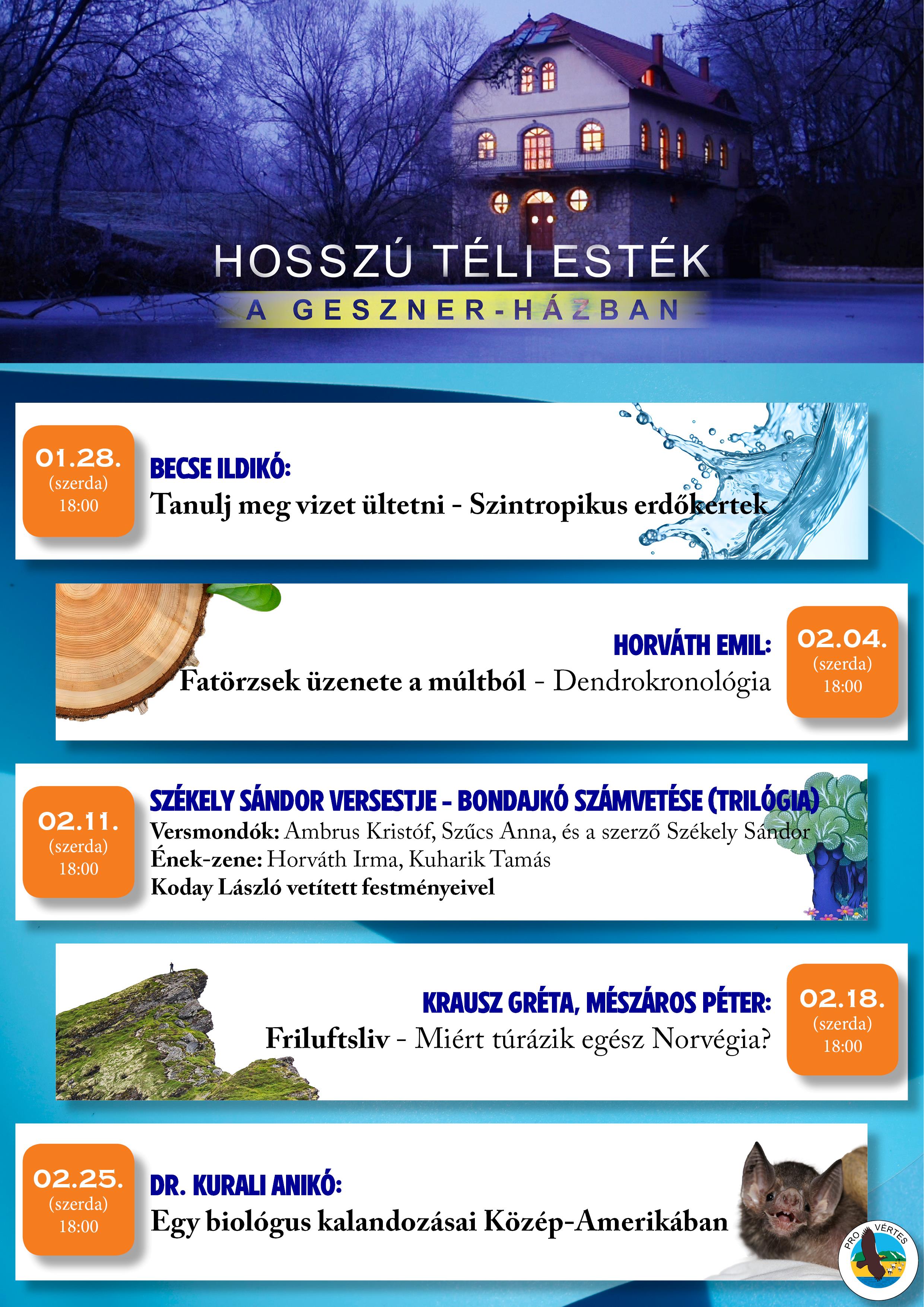 Ismét várjuk az érdeklődőket a Hosszú téli esték a Geszner-házban előadássorozatunkra.